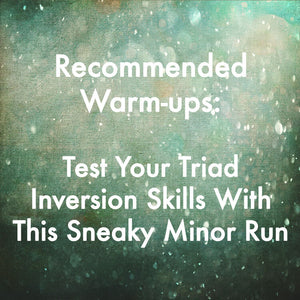 This warm-up serves to showcase how we can use triad inversions to move through chord progressions in a controlled, connected way. I've taken a I IV I V progression in B minor, and arpeggiated each, staying in position, and in the same string groupings, using knowledge of inversions to flow from one structure to the next.